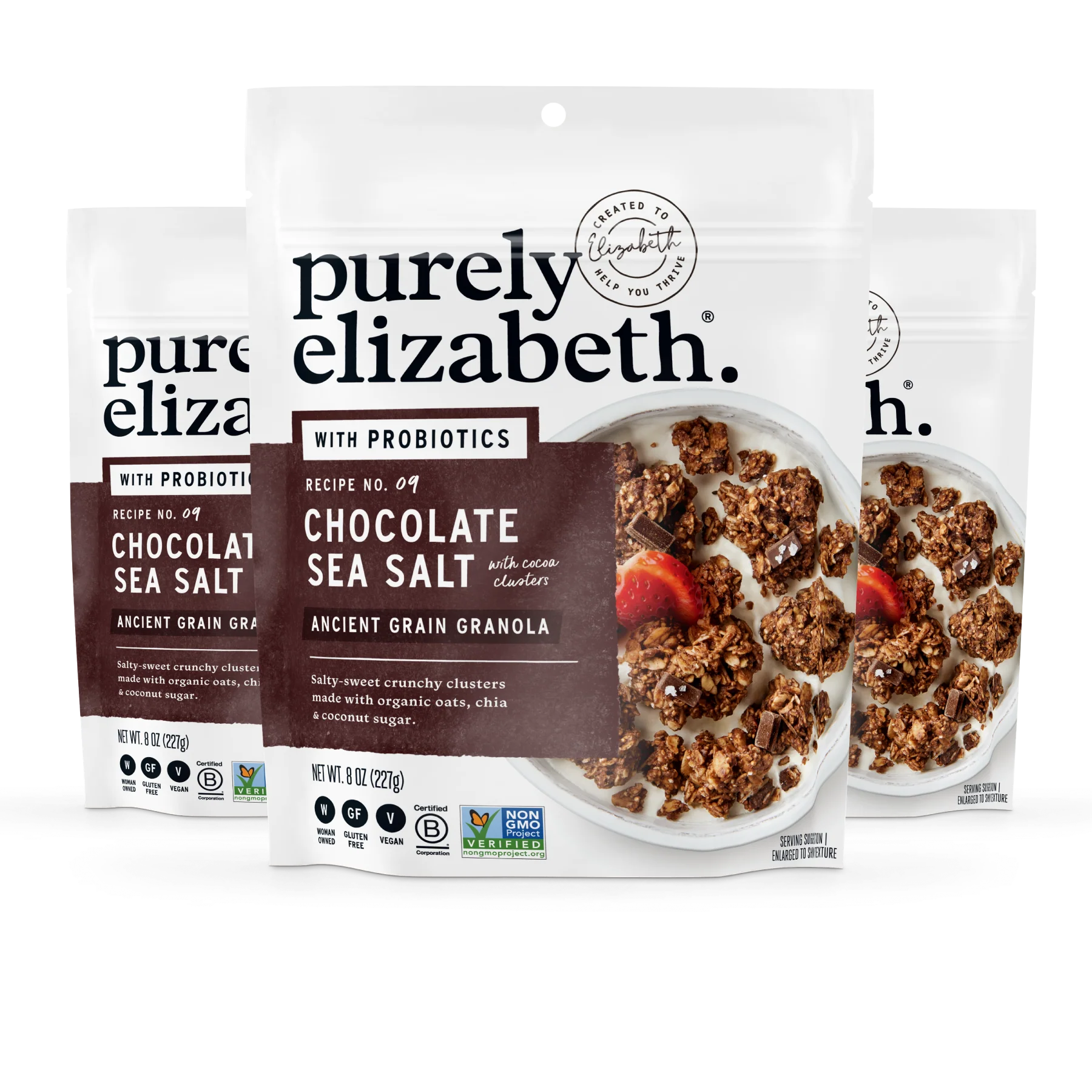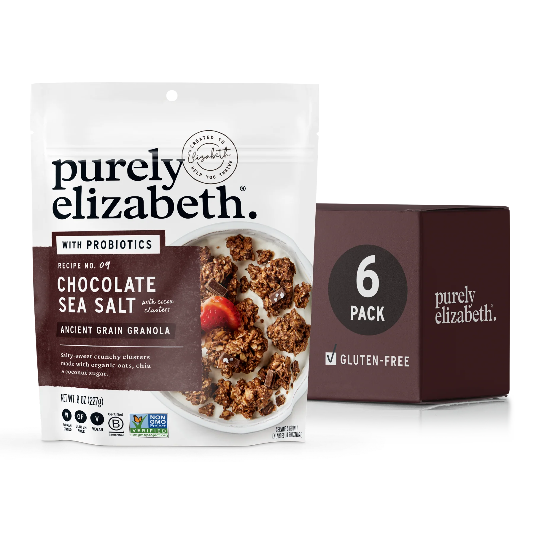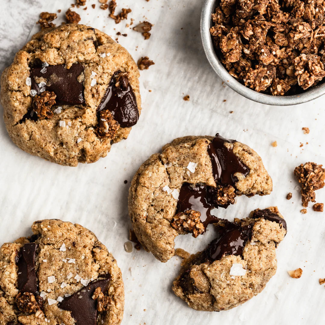 Organic Certified Gluten Free Oats, Organic Coconut Sugar, Organic Coconut Oil, Organic Fair Trade Dark Chocolate Chunks (Organic Cane Sugar, Organic Chocolate Liquor, Organic Cocoa Butter, Organic Vanilla Extract), Sunflower Seeds, Organic Puffed Amaranth, Cocoa Powder, Organic Quinoa Flakes, Cinnamon, Sea Salt, Organic Chia Seeds, Probiotic Cultures (Inulin, Palm Oil, Bacillus Coagulans GBI-30 6086).