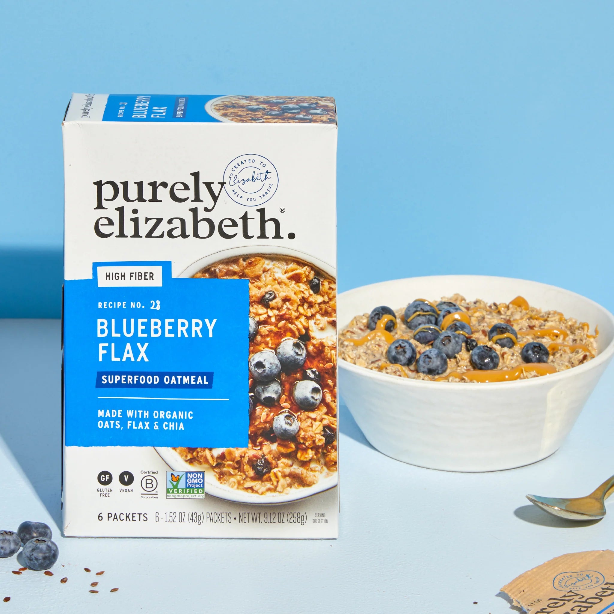 Blueberry Flax: Organic Certified Gluten-Free Oats, Organic Coconut Sugar, Dried Blueberries (Blueberries, Cane Sugar, Sunflower Oil), Organic Flax Seeds, Organic Chia Seeds, Chicory Root Powder, Freeze Dried Blueberry Powder, Sea Salt, Organic Quinoa Flakes, Organic Puffed Amaranth, Cinnamon.