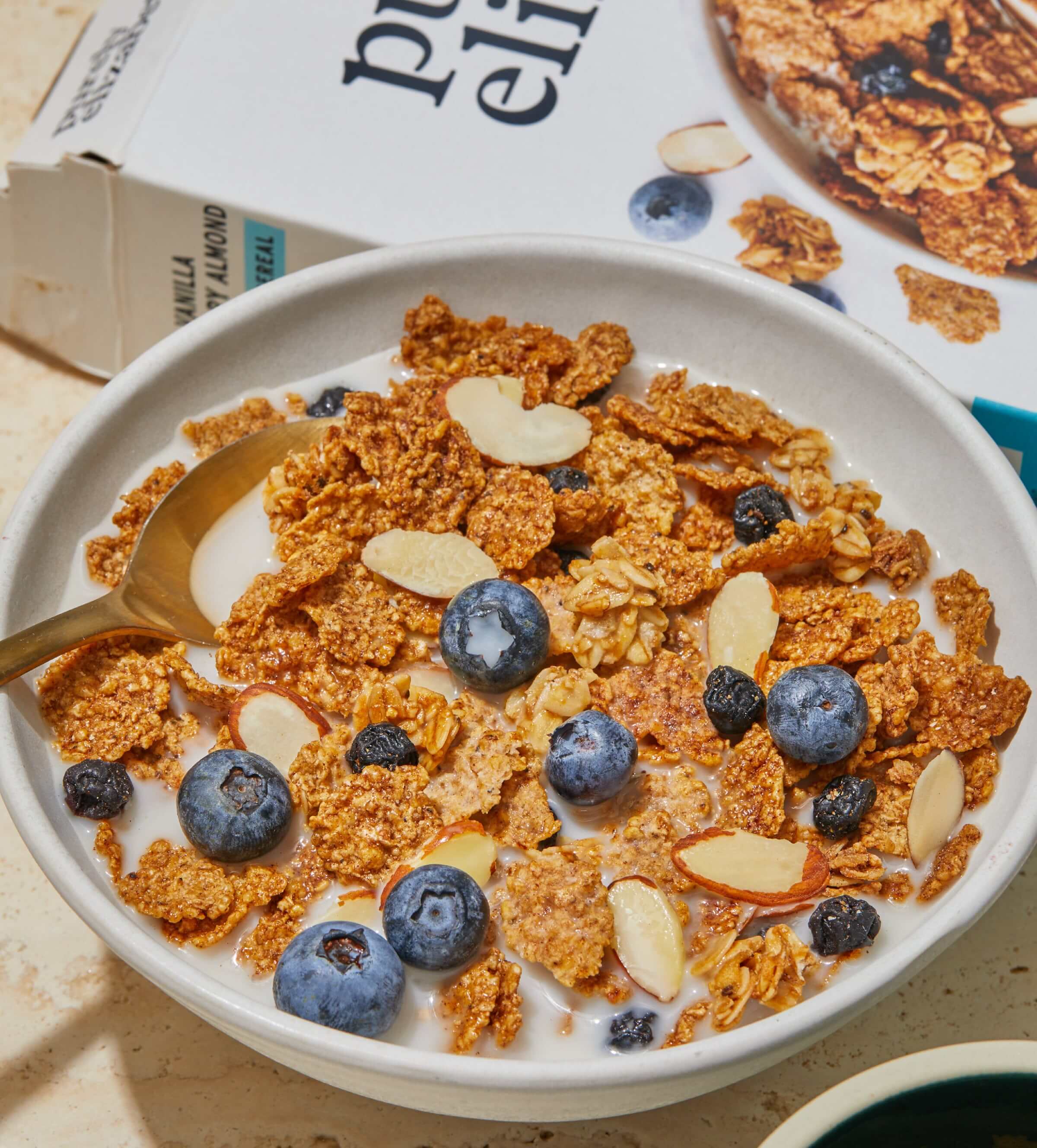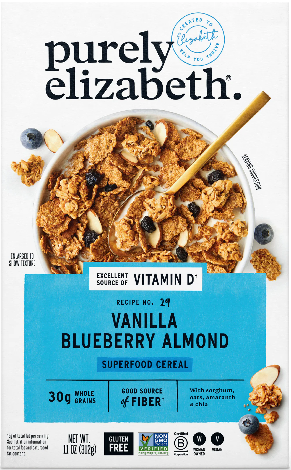 Sorghum, Organic Certified Gluten-Free Oats, Organic Coconut Sugar, Almonds, Organic Coconut Oil, Dried Blueberries (Blueberries, Cane Sugar, Sunflower Oil), Cinnamon, Sea Salt, Organic Puffed Amaranth, Vanilla Extract, Organic Chia Seeds, Organic Plant-Based Vitamin D3 (VegD3), Vitamin E (Mixed Tocopherols) Added to Preserve Freshness.